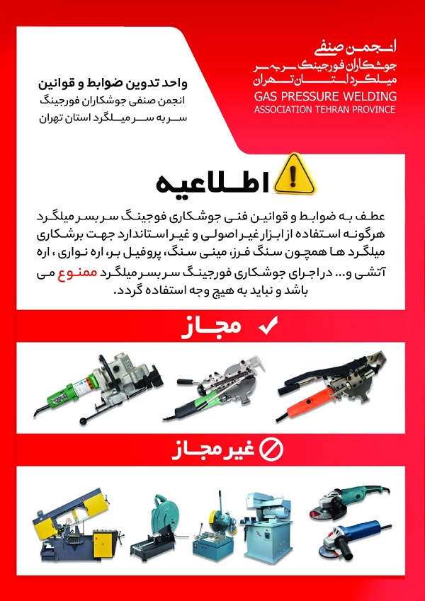 در صورت مشاهده استفاده از هر یک از ابزارهای برش ممنوعه، بلافاصله دستور توقف عملیات جوشکاری فورجینگ را صادر نمایند.